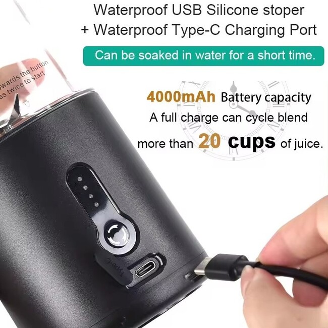Feature: 304 Stainless Steel Serrated Blade,Can Blend 15 Cups,Self-Cleaning,With Drink Lid,530ml Extra Large Capacity,Battery Double Cell 4000 MAh.