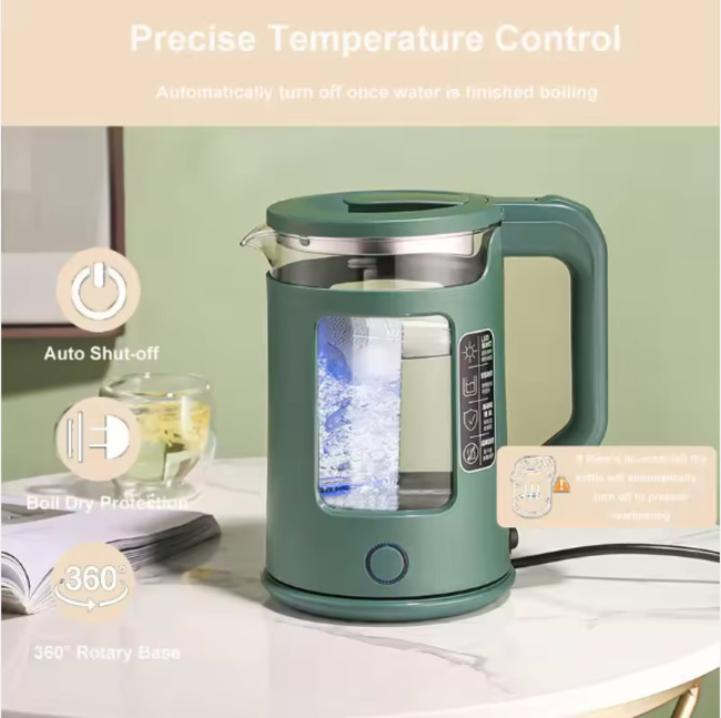 Feature: The 1350W Electric Tea Kettle Has An All-Glass Design So You Can Clearly See The Amount Of Water.This Kettle Boils Water Faster Than A Microwave And Is Safer Than Using A Hob.Auto Shut-Off Keeps The Electric Kettle From Boiling Dry.