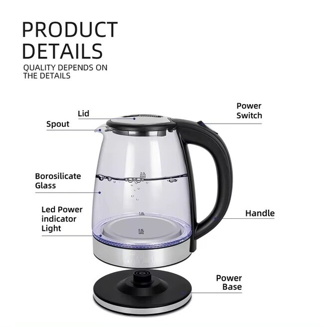 Feature: 360 Degree Rotational Base, Cordless, Temperature Control, Boil-Dry Protection
